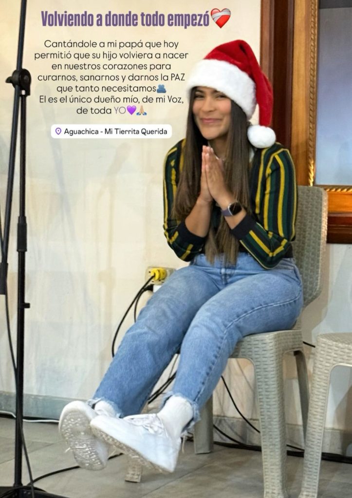 “Gracias padre por una Navidad más. Volviendo a donde todo empezó. Cantándole a mi papá que hoy permitió que su hijo volviera a nacer en nuestros corazones para curarnos, sanarnos y darnos la paz que tanto necesitamos. Él es el único dueño mío, de mi voz, de toda yo”, expresó Lizarazo.
